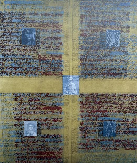 1995年周长江《重叠的新译经文》局部 综合材料由于自己在美术史系毕业时选择的专业方向是西方美术史,进入上海美术馆工作后却发现此类展览的资源极其稀少,我便在完成本职工作之后把大量的时间和精力投入了对本地当代艺术的观察和研究之中。八十年代末,还没有“当代艺术”这个学术概念,记得那时比较流行的话语是“现代艺术”、“前卫艺术”、“实验艺术”等等。由于新中国成立后上海美专搬迁合并到南京艺术学院等复杂的历史原因,上海与北京、杭州、重庆、武汉、西安、沈阳、广州、天津等城市不同,没有一家独大的本土美术学院,一些比较有代表性的当代艺术家们分散在诸如上海戏剧学院、上海工艺美校、上海大学美术学院、华东师范大学、上海师范大学和华山美校等大专院校里。来上海美术馆工作后,由于暂时没有住房,我就只能“以馆为家”,连续在办公室改成的宿舍里住了8年(1988—1996),一开始只有8平方米,后来换了一间17平方米的房间。当时的上海美术馆地处南京西路456号,就在人民广场旁边,是绝对的市中心,所以小小的宿舍里常常是宾客盈门,碰到有开幕式的日子,屋里往往是走了一拨又来一拨,绝大多数重要的艺术家我都是在家里认识的。
