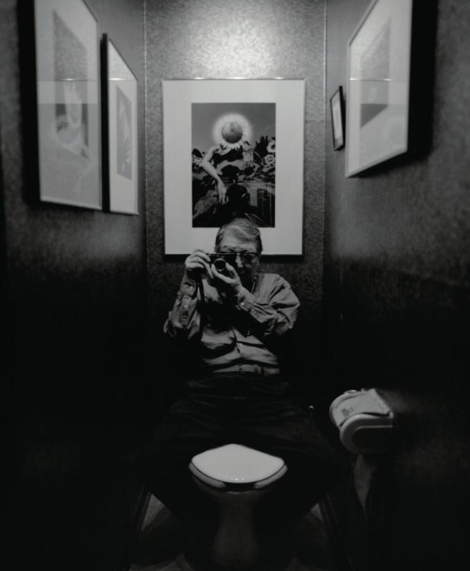 在我看来,这一组照片中的人物更为放松,安冈章太郎躺在自家沙发上小憩;森山大道夹着烟斜靠在沙发上;细江英公甚至坐在了马桶上,手握相机与上田义彦对拍;佐藤忠良则沉浸在自己的创作中,完全忽略了摄影师的存在。