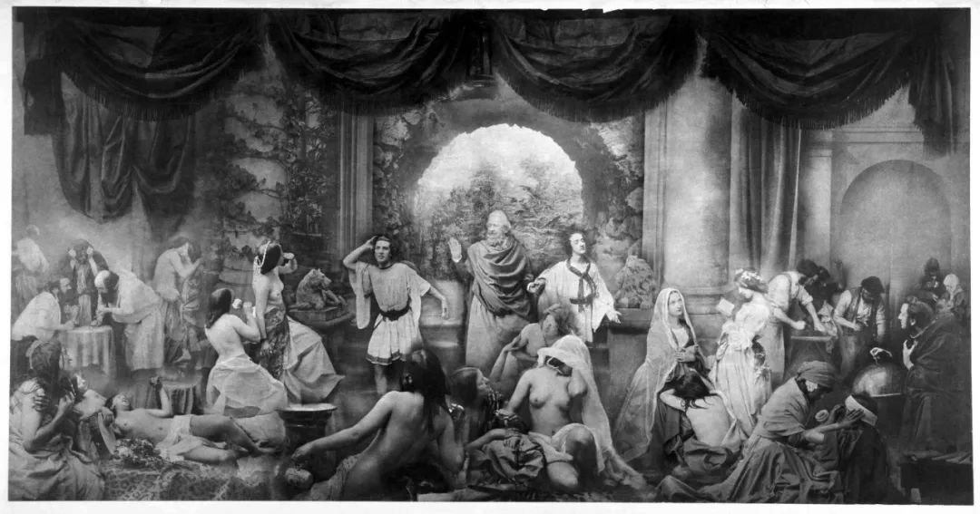 《人生的两条道路》 Oscar Gustave Rejlander摄这幅作品模仿了拉斐尔的名画《雅典学院》。