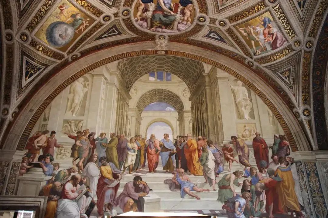 照片的构图、取材和风格,都与《雅典学院》极其相似。