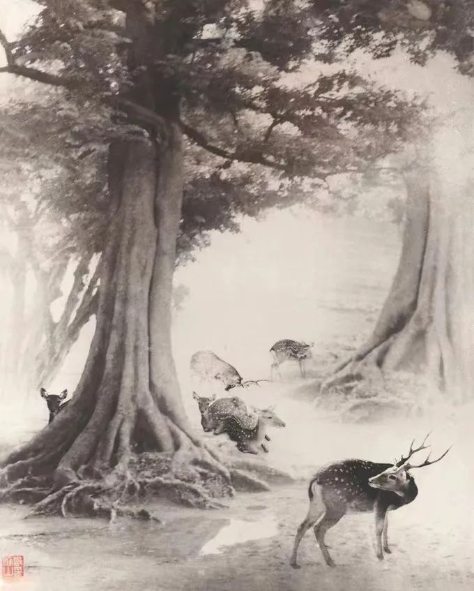 《鹿苑长春》 郎静山 摄由于在中国传统绘画体系中,“糊风写意”才更加符合传统文人知识分子的审美。