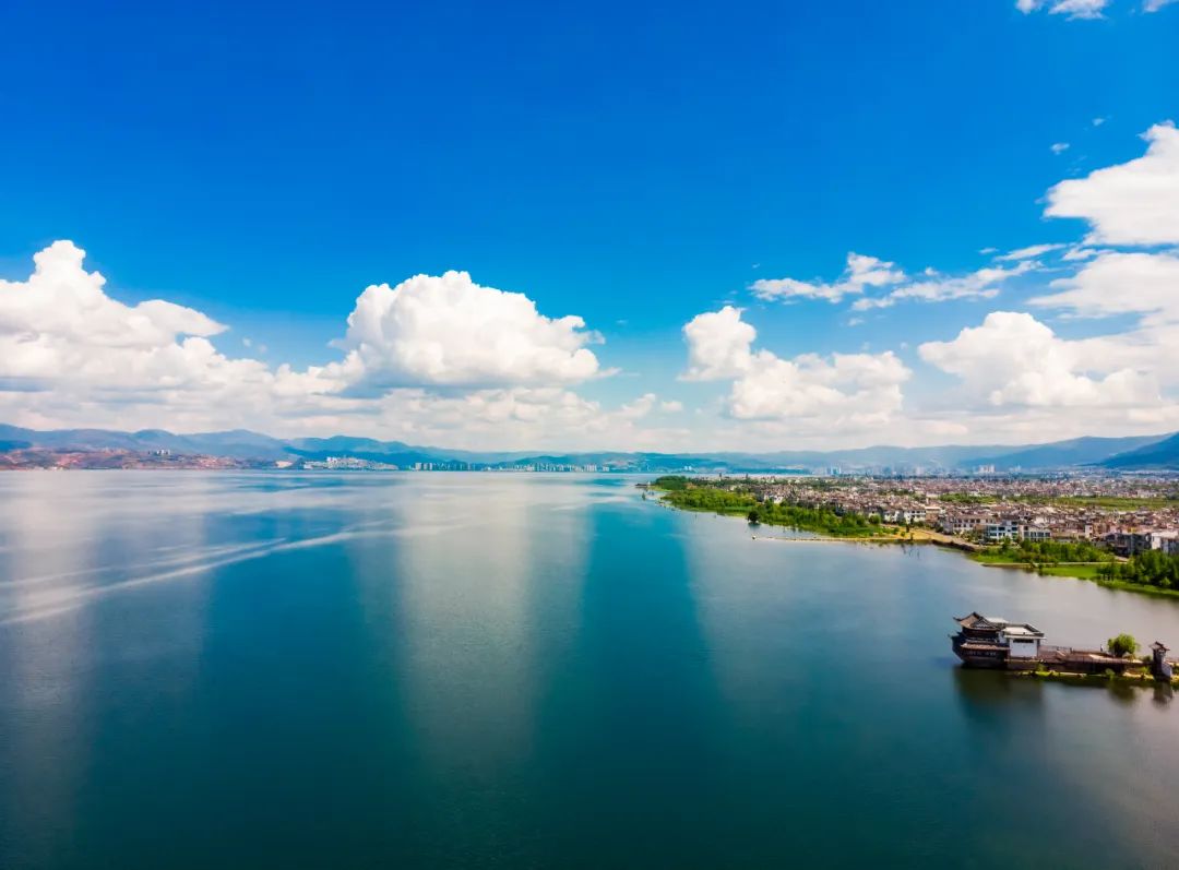 抚仙湖,湖水晶莹剔透、清澈见底,古人称为“琉璃万顷”。抚仙湖形如倒置葫芦状,清澈幽深,是中国水质最好的淡水湖泊之一,湖水透明极高,湖光山色,美景如画,如同一块光洁的翡翠镶嵌在云贵高原之上。