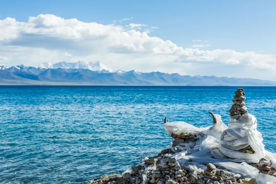 纳木措是中国西藏自治区最大的内陆湖,是西藏的“三大圣湖”之一,也是世界上最高的咸水湖。纳木措湖水清澈透明,湖面呈天蓝色,水天相融,浑然一体,闲游湖畔,似有身临仙境之感。