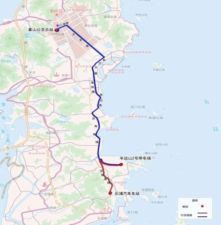 从象山出发,可前往象山石浦客运东站和象山公交总站乘车。值得注意的是,象山公交总站、象山石浦汽车东站采取客满即走和间隔1小时发车相结合的方式进行,无客不发车。