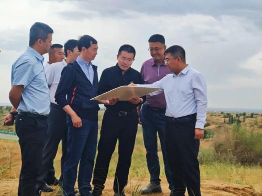 △调研组一行考察鄂托克前旗库布其——毛乌素沙漠沙化地综合防治重点项目(一期)建设情况。调研组指出,防沙治沙功在当代、利在千秋。要坚决贯彻习近平总书记重要指示要求,统筹推进山水林田湖草沙一体化保护和系统治理,以筑牢我国北方重要生态安全屏障为目标,坚决打好黄河“几字弯”攻坚战。要创新工作机制,强化科技应用和转化,实施精准防沙治沙举措,有效引导和调动社会各界力量参与防沙治沙和造林绿化的积极性和主动性。要总结推广好经验、好做法,不断提升防沙治沙科学化水平,以实际行动践行“绿水青山就是金山银山”的理念,进一步巩固和扩大治沙造林成果,在“三北”重点生态工程建设和荒漠化综合治理工作中作出更大贡献。