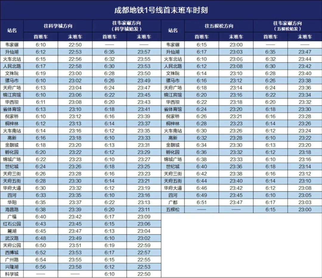 ▲1号线首末班车时刻表