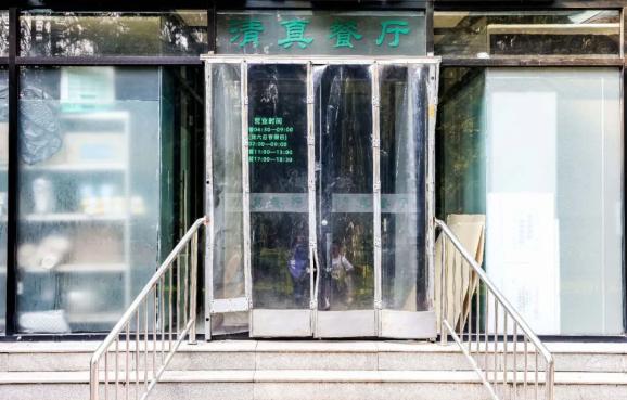 清真餐厅位于立德楼东侧,入口为南苑餐厅一层南门,经营主食、炒菜、盖饭、拉条子等,同时供应新疆炒米粉、面条、清真水饺等特色食品。