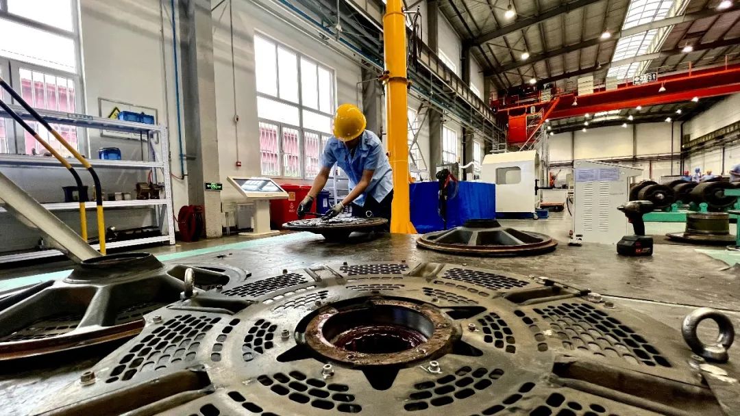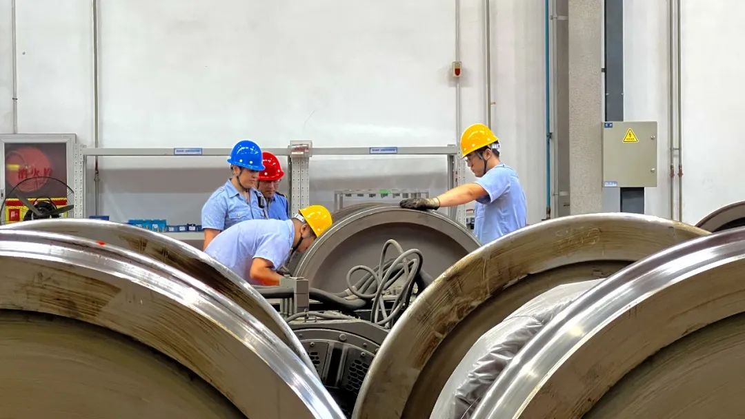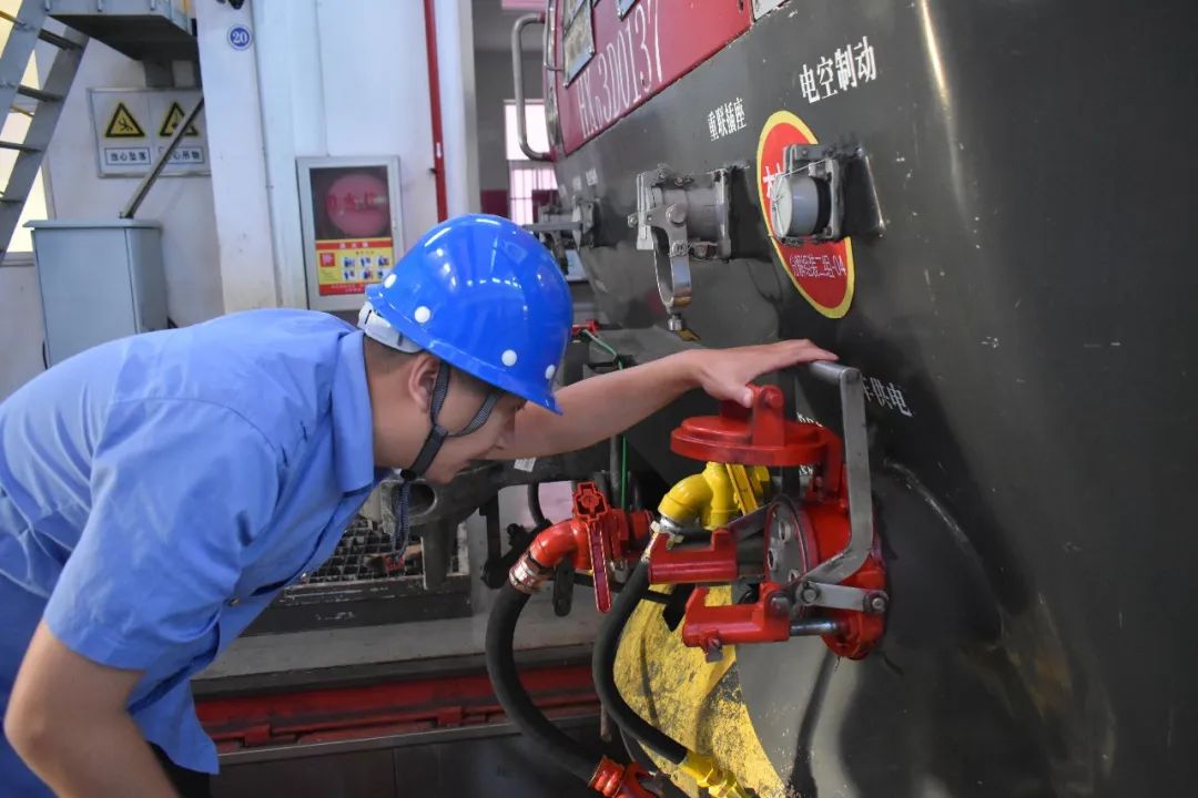 检修库内的每一名师傅都专注认真地对机车各部件进行检修