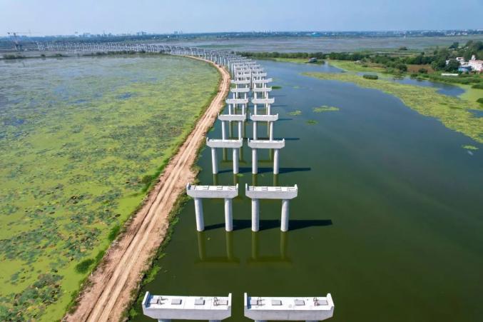 拍摄:贺永鹏(七分公司)◎9月17日,中铁四局七分公司承建的凤(台)毛(集)快速通道西淝河特大桥下部结构全部完成。