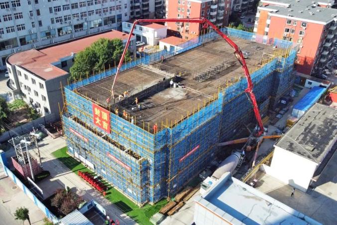 拍摄:高晨(四公司)◎9月14日,中铁四局四公司承建的天津大港城市更新项目新建幼儿园工程封顶。该项目建设规模为4130.48平方米,主要建设内容包括幼儿园综合教学楼主体建筑,同时实施拆除原有建筑、配建道路广场、活动场地、景观绿化、围墙及大门、配套管网等工程。