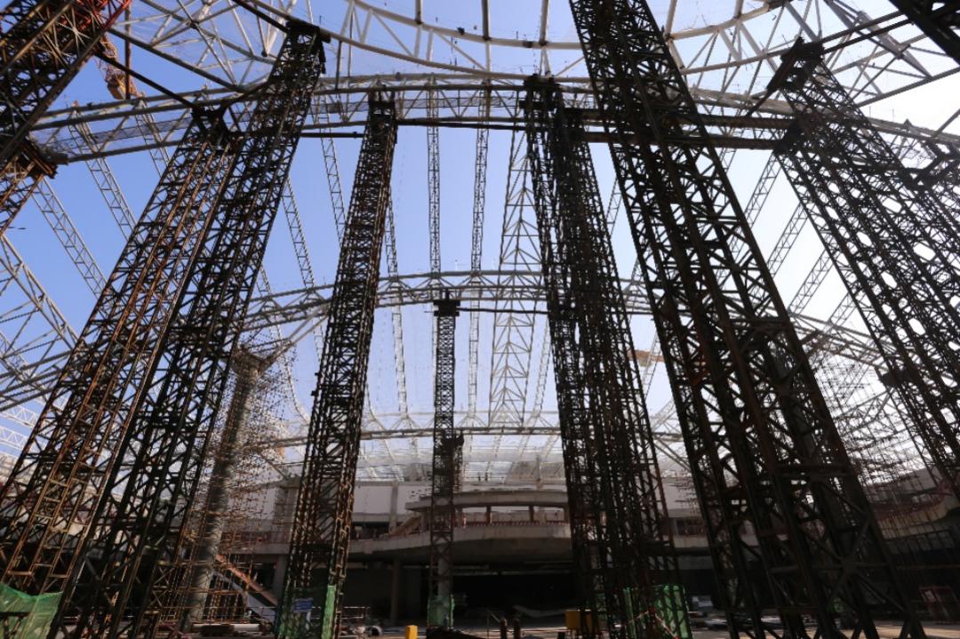超大面积球形空间钢屋盖施工技术+巨型预应力梁柱整体自平衡体系建造技术