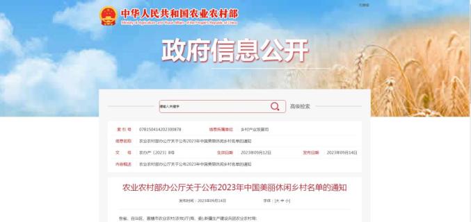 农业农村部办公厅关于公布2023年中国美丽休闲乡村名单的通知
