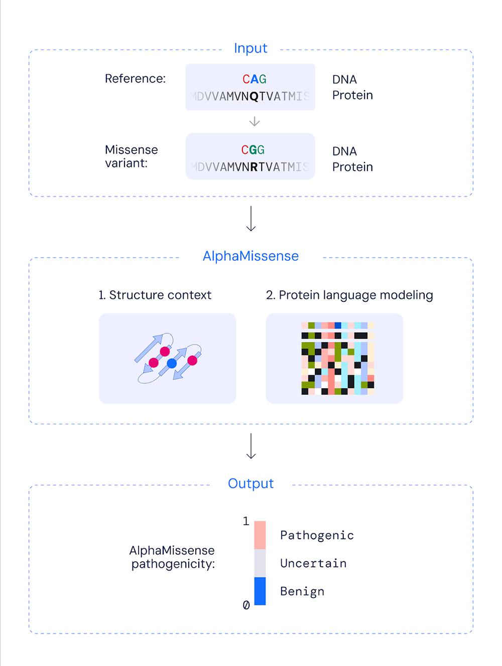 智东西9月20日报道,当地时间9月19日,国际顶刊《科学》(Science)刊发了来自谷歌DeepMind团队的论文,论文提出一种新的AI系统AlphaMissense——通过微调蛋白质预测模型AlphaFold,可以预测改变蛋白质单个氨基酸的错义突变的致病性。换句话说,这一AI工具可用于判别人类的基因突变是否会导致疾病,且可预测的范围比人类专家提升近千倍。