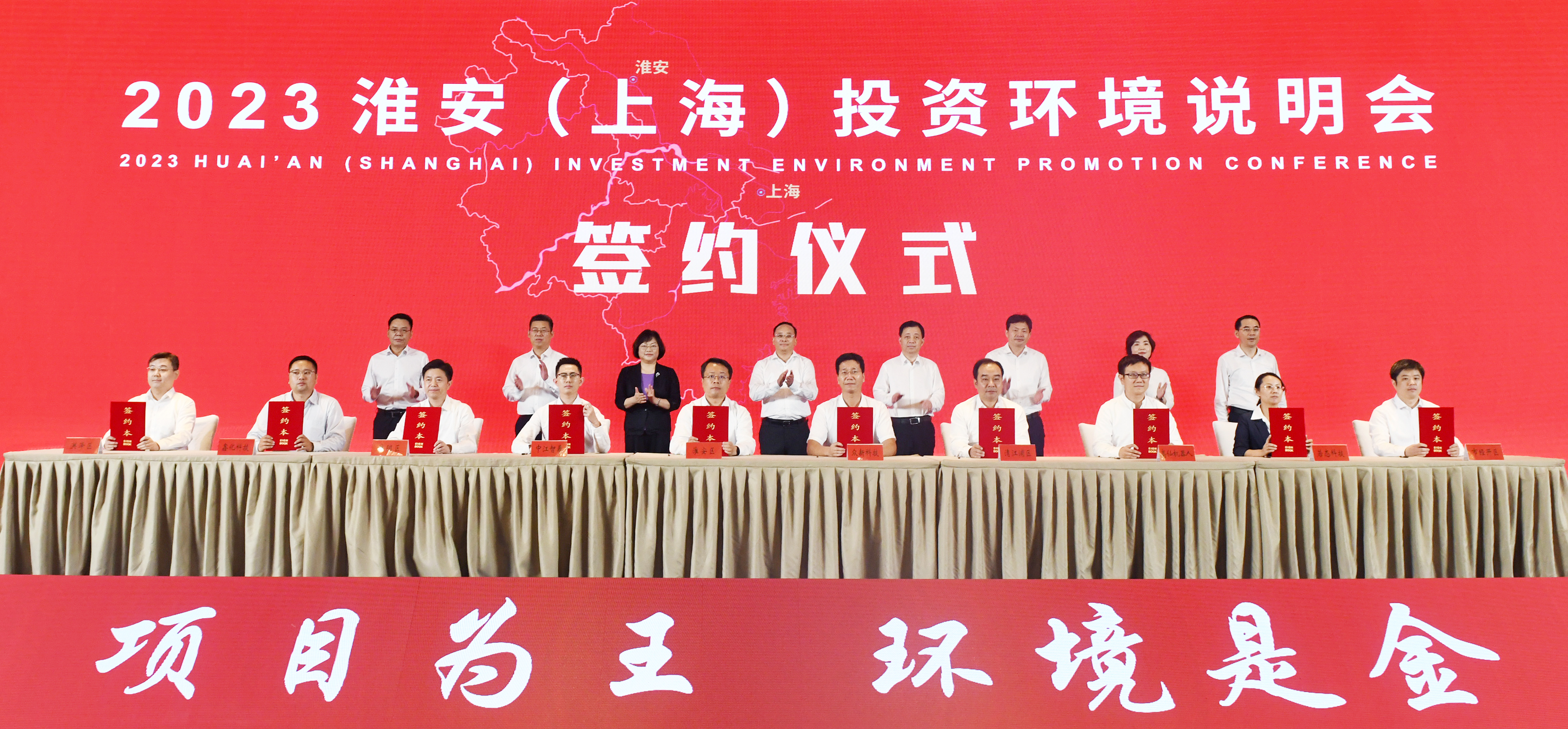 9月19日下午,“诚意满淮共创未来”2023淮安(上海)投资环境说明会在沪举行,集中签约64个项目、协议引资371亿元。
