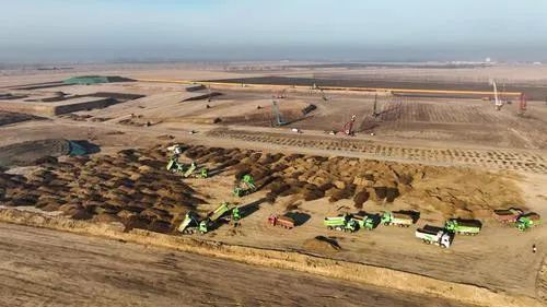 挖掘机加紧作业,运土车来回穿梭……在哈尔滨机场东二跑道施工现场,数十台大型施工设备正开足马力,加快推进项目建设进度。
