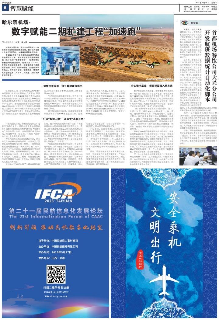 (本文刊载于中国民航报2023年9月20日8版)《智慧民航》导刊每周三