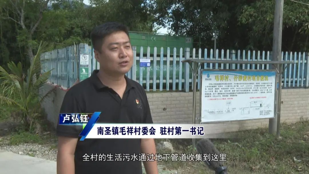 南圣镇毛祥村委会驻村第一书记卢弘钰:这个就是我们村里面的净水设备,全村的生活污水通过地下管道收集到这里,然后由它进行一个净化处理,把污水变成清水,最终达到一个排放的标准。这样的站点,目前五指山共有201处,覆盖了206个乡镇污水处理厂管网无法覆盖的村庄,实现把生活污水治理的“毛细血管”延伸到全市每个角落。