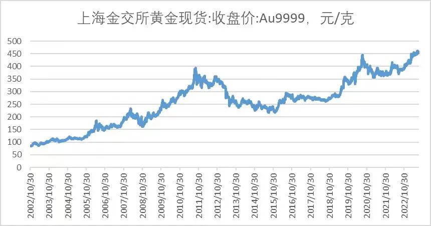 2002年-2022年国内黄金价格变动。(图/数据来源:上海金交所)当然,计算收益还需要考虑通货膨胀。一直以来,黄金能抗通胀的说法广为流传。把时间拉长,在特定的国家和地区,金价的增长确实能跑赢通货膨胀。比如过去20年,国内金价的复合增速大约每年8%,高于国内的通货膨胀率。但在一些通货膨胀率较高的国家,这种说法就不能成立了。