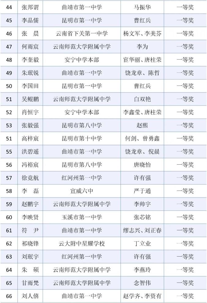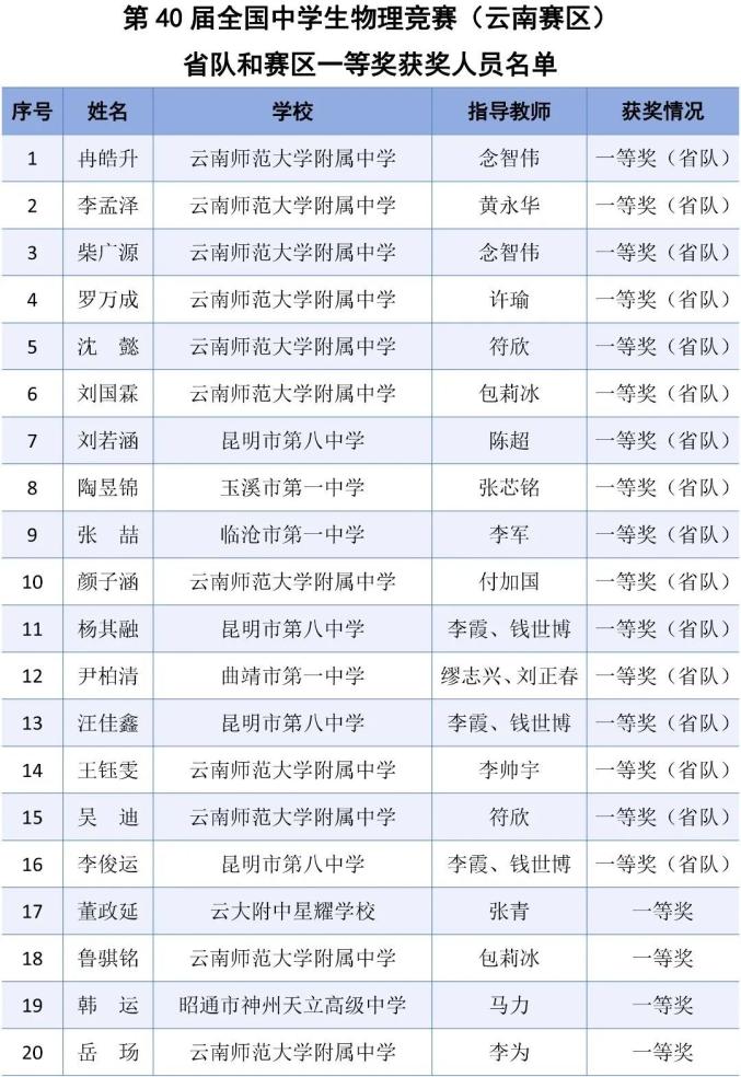 点此查看具体名单全国中学生物理竞赛云南省复赛