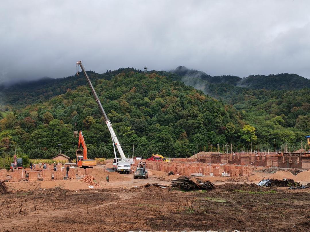 9月19日上午,开原镇新开村的异址重建工地上,各类施工车辆往来穿梭,工人们紧张忙碌地施工,一片热火朝天的景象。