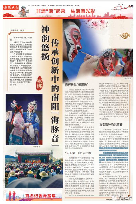 9月20日,南阳晚报推出专版《神韵悠扬 传承创新中的南阳“海豚音”》,深入报道内乡宛梆的创新发展之路。现将全文转推如下: