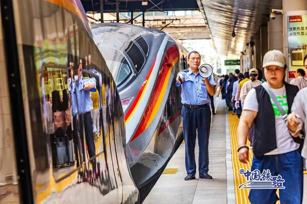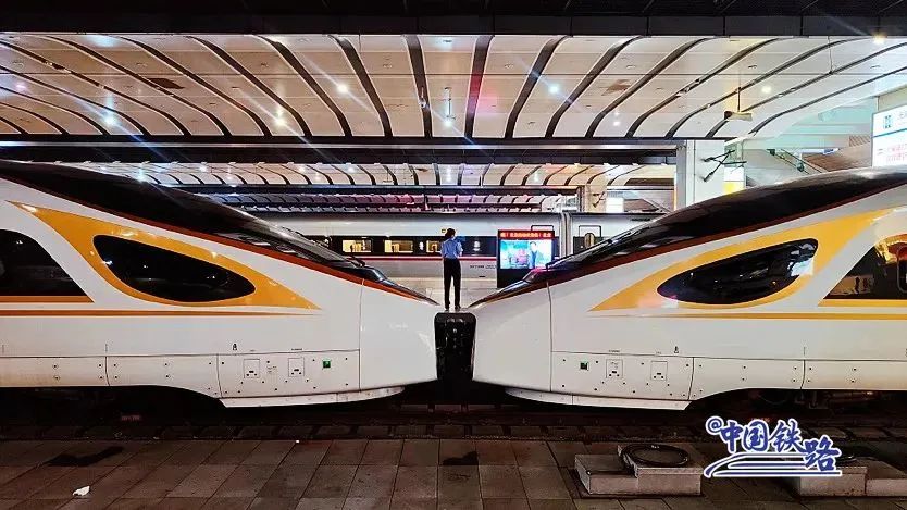 重联!运力翻番一列标准动车组有8节车厢,重(chóng)联是将两列同型号的动车组联挂运行。动车组列车重联后,由原来的8辆编组变成16辆编组,运能实现翻倍。