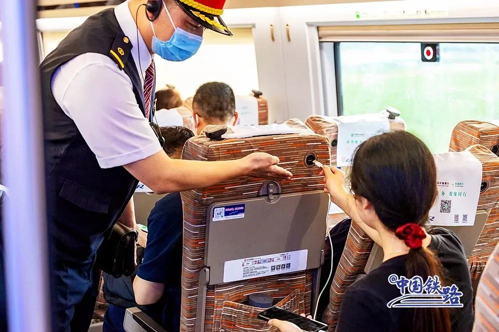 旅客扫描座椅扶手上的“铁路畅行码”,餐饮选购、重点旅客服务、查找遗失品“码”上解决。