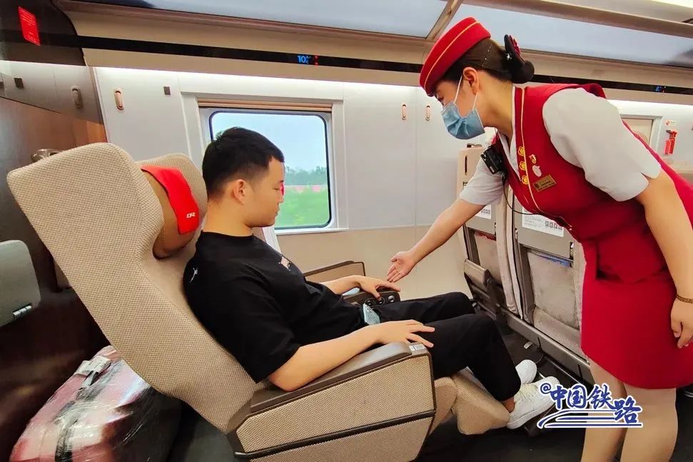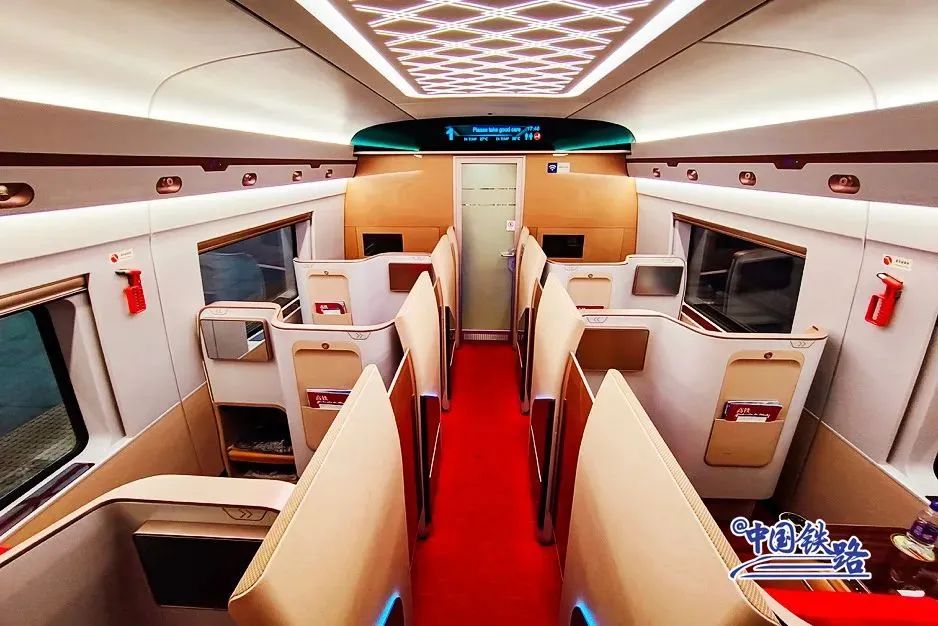 与重联动车组不同,长编组复兴号的16节车厢贯通,旅客可以从头走到尾。“8动8拖”的配置也让列车动力满满。