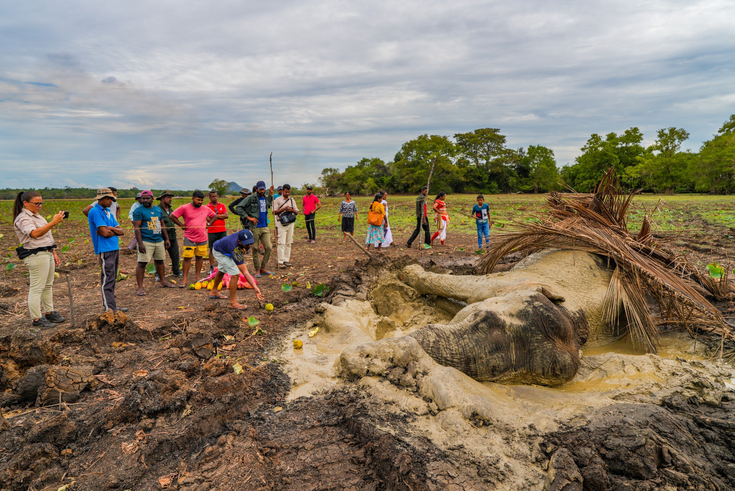 斯里兰卡民众救助泥滩病重大象,未能进食令人心痛