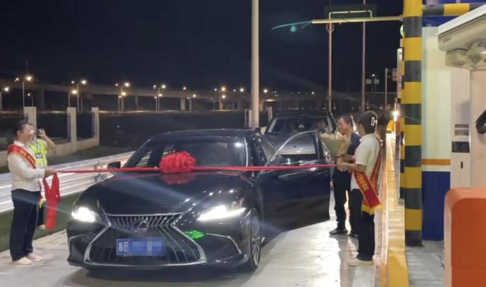 9月22日21时30分,车辆有序驶入春晓收费站,宣告象山湾疏港高速通车。