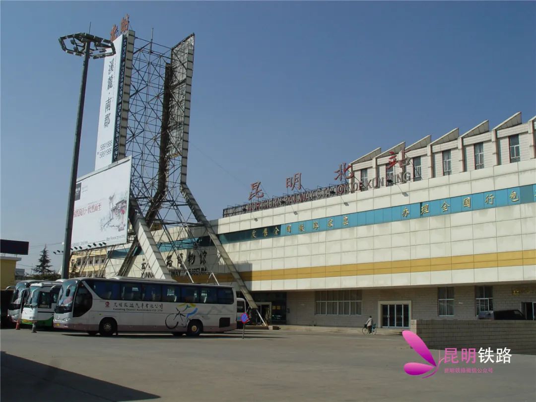 北昆明北站位于云南省昆明市盘龙区,汇集昆石、昆小、昆河三线车流,在繁盛时期每天解编车列30多列,发送旅客8千多人,车站干部职工达500多人。上世纪末,从云南昆明到越南河内的米轨国际旅客列车就从这里始发。