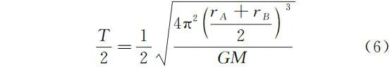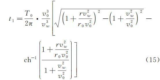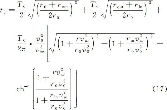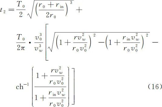 由于三种逃逸方式仅涉及双曲轨迹上的时间计算以及椭圆半周期的时间计算,因此可由式(6)、式(8)得到三种逃逸方式从 r0 开始运行到 r 位置处所需的时间 ( r > r0 )。设 T0 为在半径为 r0 的圆形轨道上运行的周期。