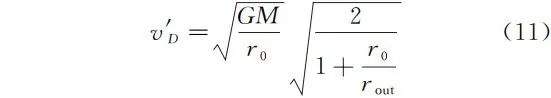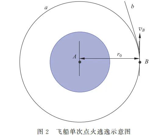 如图 2 所示,单次逃逸即在圆轨道 a 上 B 处,单次点火后直接进入双曲轨道 b 逃逸出地球,由式(2)有点火加速后达到的速度