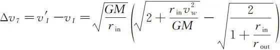 Oberth 效应是指当航天器的初始速度越大时,增加相同的 Δv 后航天器的比动能增加得越大。该效应可用于轨道捕获,例如在朱诺探测器进入木星轨道时,就用到了该技术[6] 。近年来国内外都有学者对此效应进行了分析与讨论[7,8]。