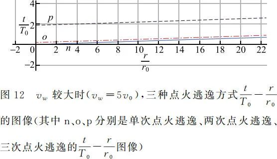 由图像可以看出,当 vw 较小且 r 较小时,单次逃逸所需时间最短,其次是两次点火逃逸用时短,但当 r 较大时,两次点火逃逸用时短。