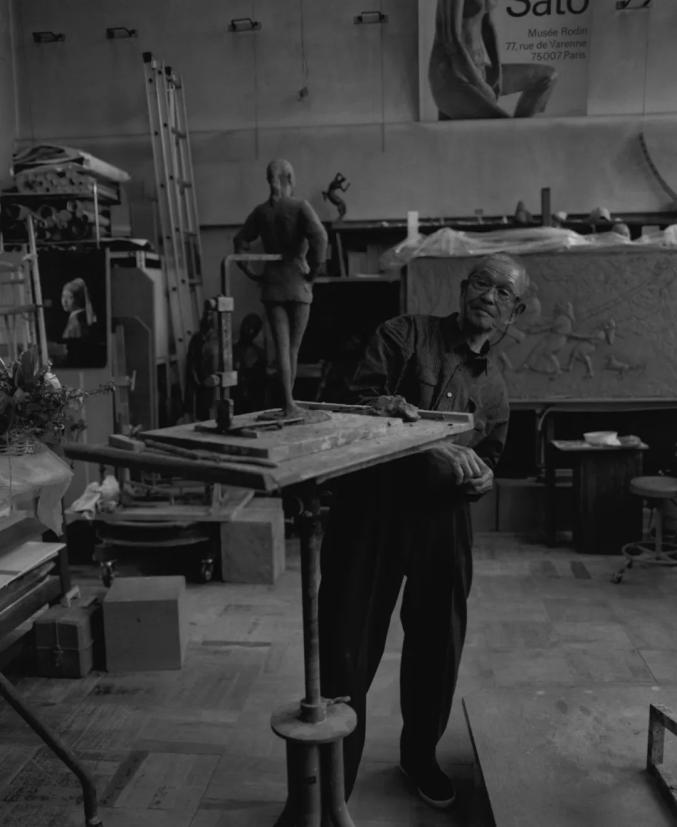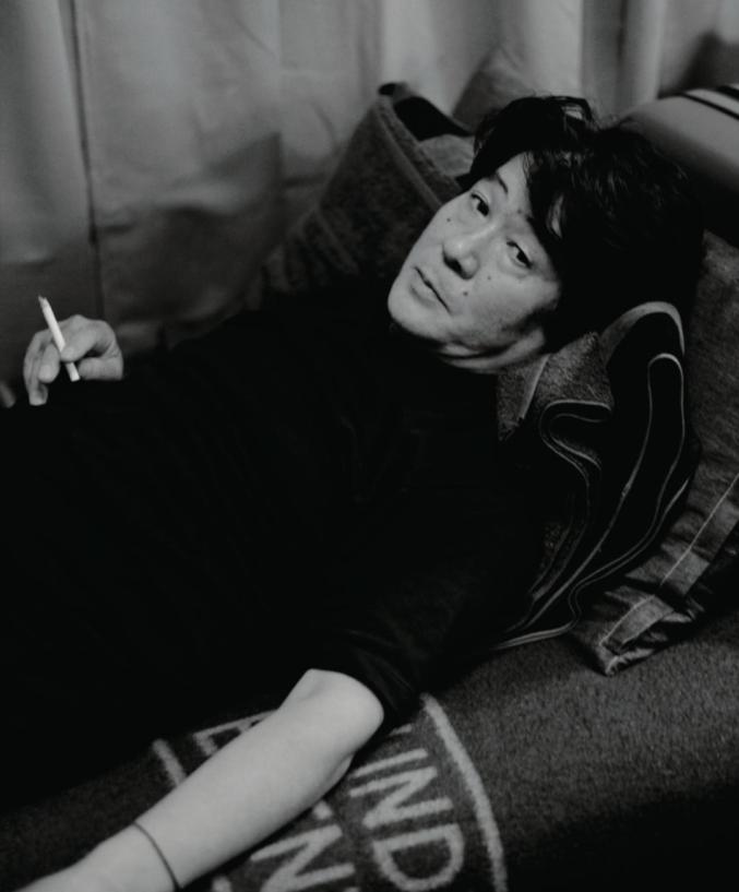 在我看来,这一组照片中的人物更为放松,安冈章太郎躺在自家沙发上小憩;森山大道夹着烟斜靠在沙发上;细江英公甚至坐在了马桶上,手握相机与上田义彦对拍;佐藤忠良则沉浸在自己的创作中,完全忽略了摄影师的存在。