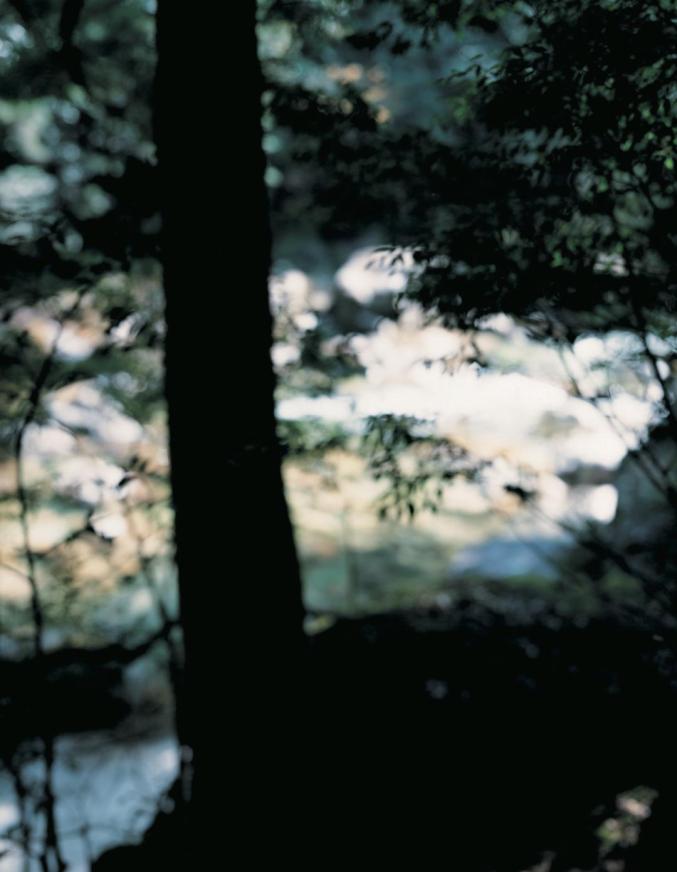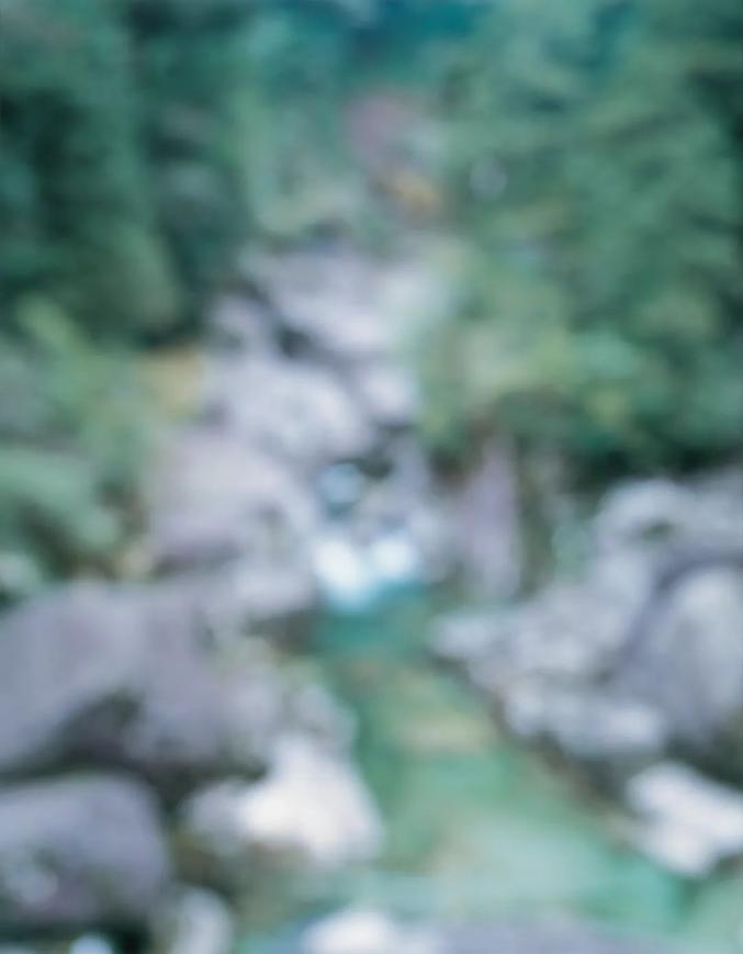在《M.River》中,上田义彦拍摄了屋久岛的河流以及河边的树木和石头,照片从清晰逐渐变得模糊,直到画面中的水、植物和石头失去了形状,变成了不同色彩和亮度的光块。