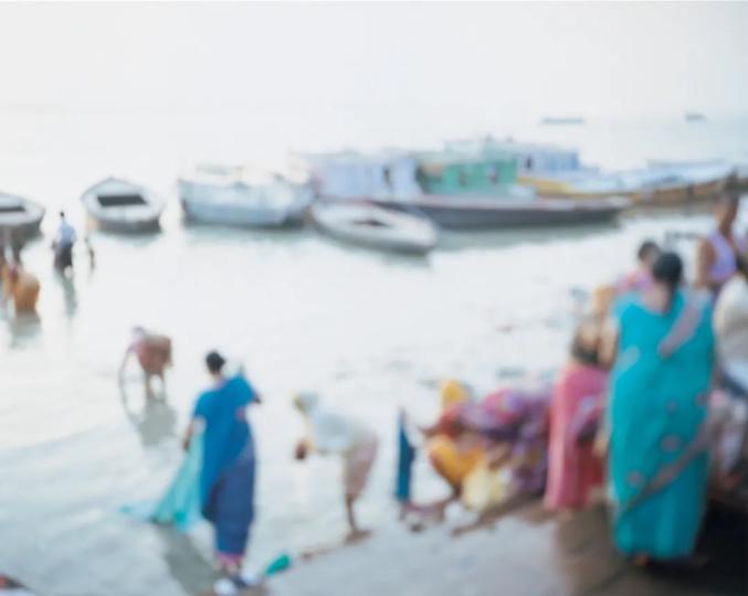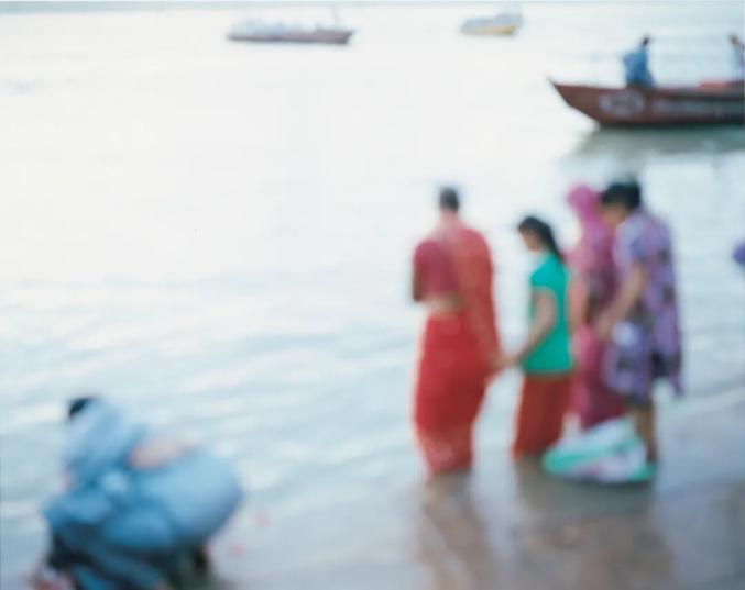 福井,2013M.系列从屋久岛的河流延伸至大海,而后到达恒河。上田义彦选择拍摄恒河的河水和河边的人们,同样刻意失焦,画面中的人和河失去了具体的形状,变成了绚丽的颜色。这组作品被命名为《M.Ganges》。