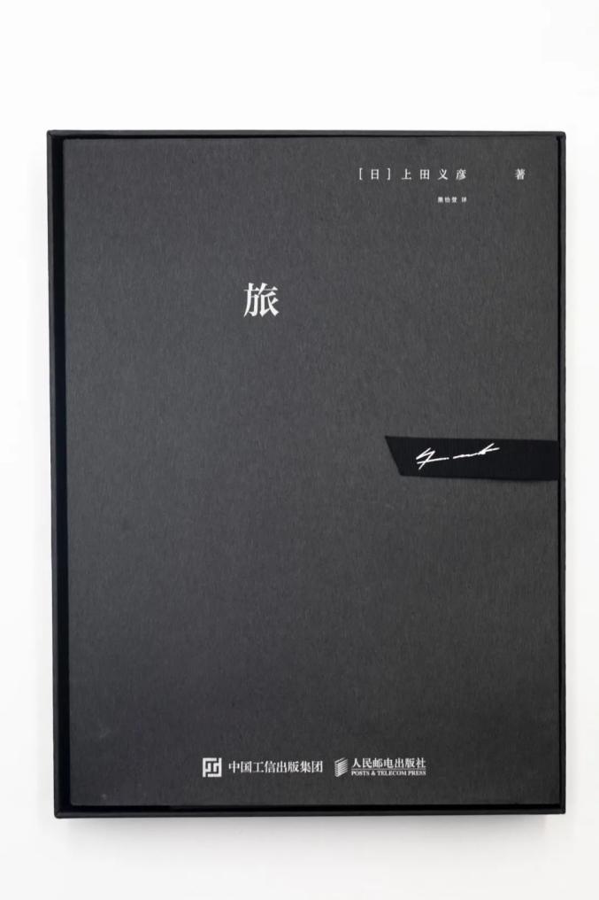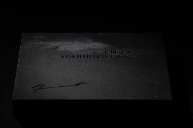 盒盖中央是金属烫黑的书名“旅”和上田义彦的中英文姓名,左下角是激光灼烧的镂空签名。
