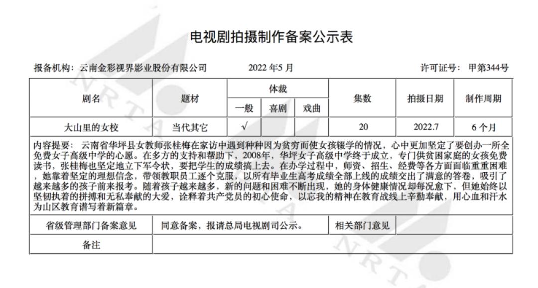 剧版《大山里的女校》讲述张桂梅在创办华坪女高时面临的种种困难,在她疾病缠身的情况下,依然坚守教育一线的故事。