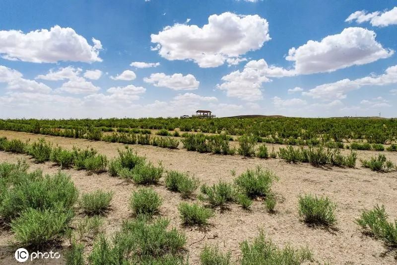 1979年,为了应对土地沙化,西北、华北、东北地区开始建设防护林体系,包括沙蒿在内的蒿属植物,因其抗风能力和储水能力强,被广泛使用,毛乌素沙漠中最具代表性的再生沙障就是沙柳和沙蒿沙障。鄂尔多斯康巴什区国土局在一篇论文中提到,“(沙棘+沙蒿)可作为风沙区生态建设中最优植被配置模式。”