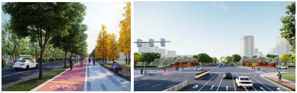 ▲项目效果图值得关注的是,此次改造工程内容包括道路工程、排水工程、交安工程、绿化工程、照明工程、人行过街地道等相关配套工程。改造后全线将有16个智慧公交站台,且设置5处交叉口人行过街,7处路段斑马线过街。