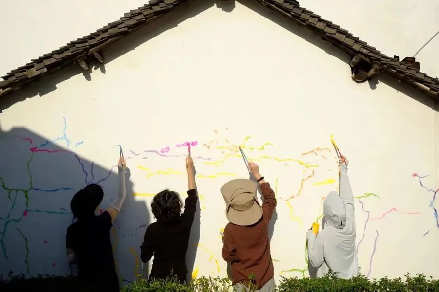 倪卫华《追痕》艺术家选择有痕迹的老墙,让参与者们用各种颜色临描墙面自然变化的时间痕迹,用艺术的方式感知和追忆当地人们的生活、文化和历史,连接本土文化。漆栖文化体验馆本是传统漆艺空间,策展团队选择当代漆艺作品置入其中,并且有雕塑和装置融入环境空间中,推动传统工艺向当代艺术转化。