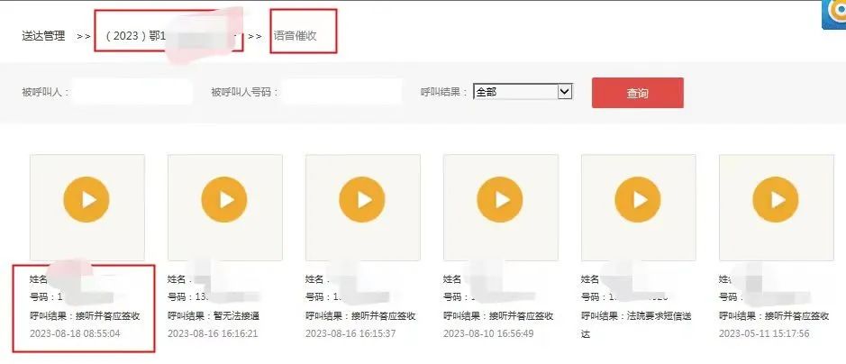 (4)12368语音通知(非短信通知)通过12368送达专员,语音通知当事人签收法律文书。