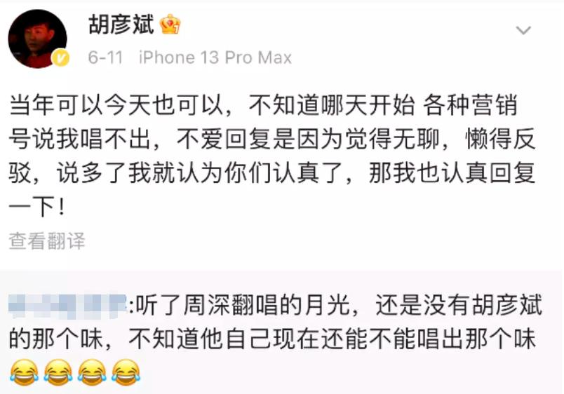 不过从目前胡彦斌的社交平台来看,他和自称精神状态捉摸不定的网友相处得十分友好。