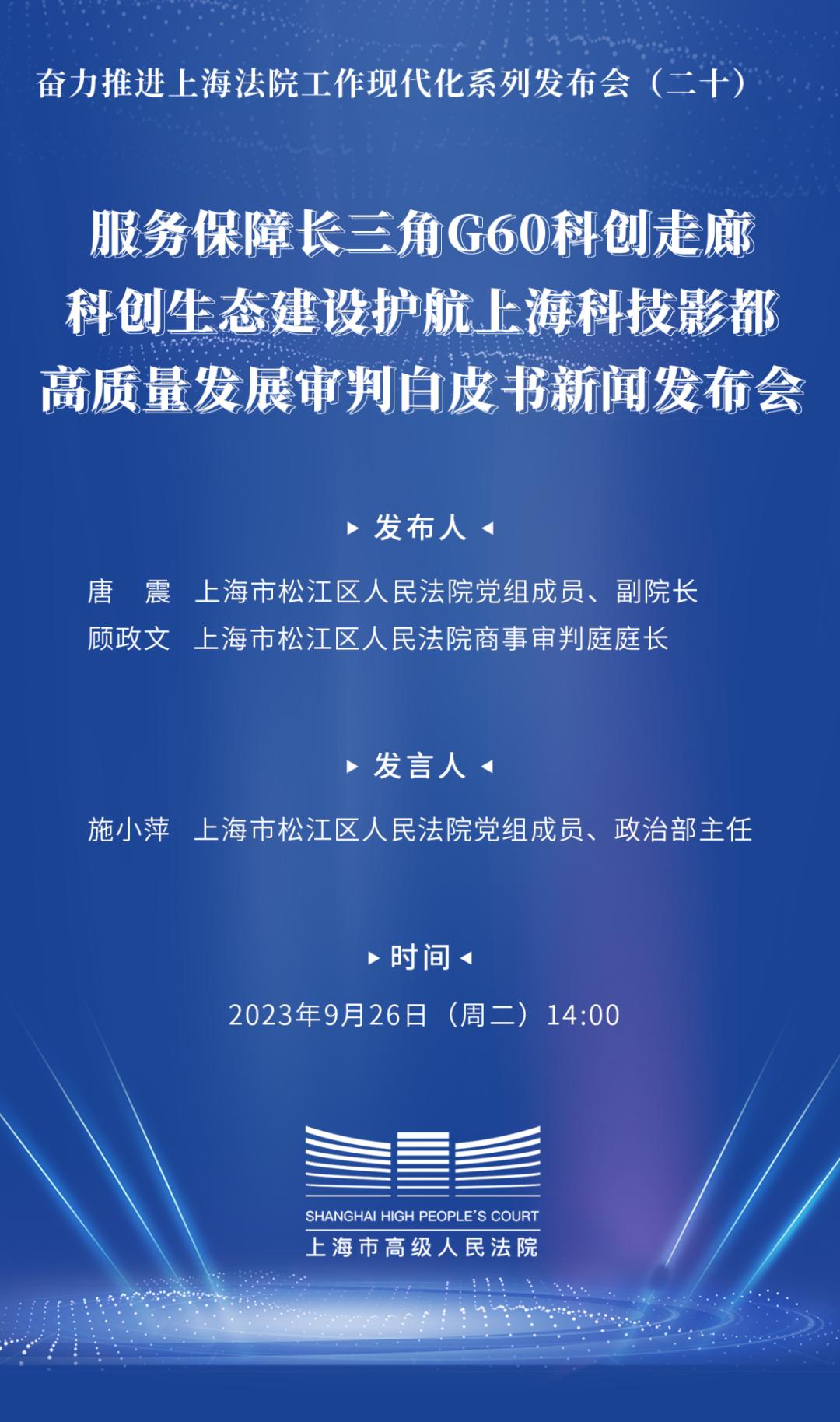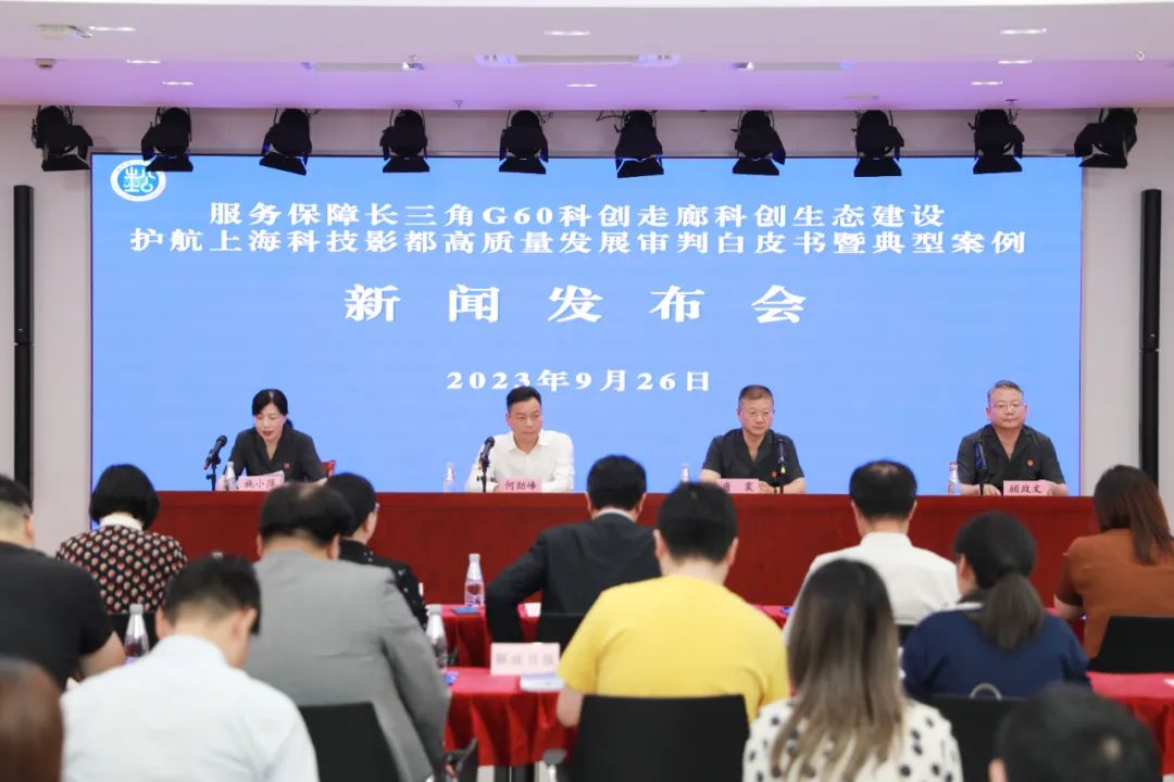 影视产业是国家文化软实力的重要载体,对于坚定文化自信、强化区域凝聚力、集聚经济增长新动力、满足人民群众对美好生活的期盼有着重要意义。为进一步发挥能动司法作用,服务保障G60科创走廊科创生态建设,护航区域影视产业高质量发展,今天(9月26日)下午,上海市松江区人民法院(以下简称松江区人民法院)举办新闻发布会,发布《服务保障长三角G60科创走廊科创生态建设护航上海科技影都高质量发展审判白皮书(2021-2023)》(以下简称白皮书)及十个典型案例。本场发布会是奋力推进上海法院工作现代化系列发布会的第20场。