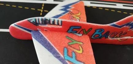 打开模型零配套件材料,制作一架回旋飞机模型需要思考如何完成:机身上的三个凹槽孔的抠除、主翼插入最大的孔位、尾翼插入的尾部孔位等。飞机的哪个舵面可以控制飞机做出回旋的特技动作?孩子们时而独立思考制作,时而小组探究,调整水平尾翼的上翘角度,优化制作方案。