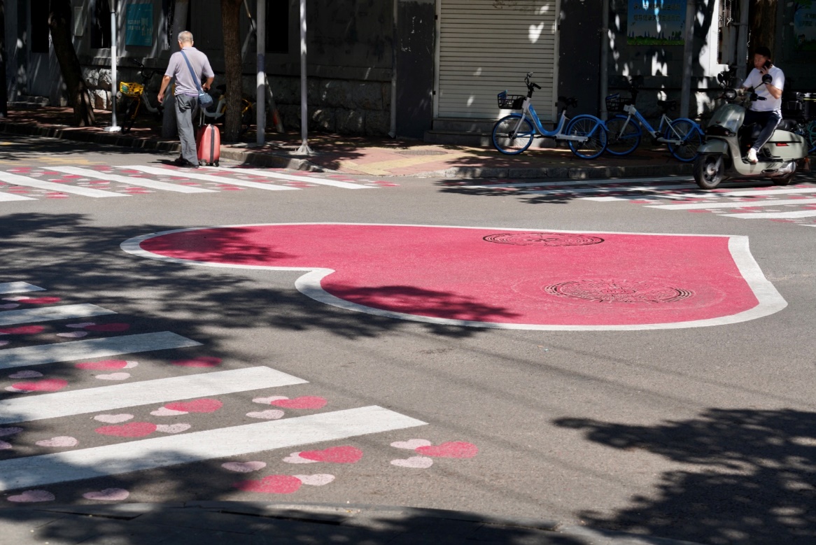 经三路爱心斑马线。澎湃新闻记者 王珏玮 摄