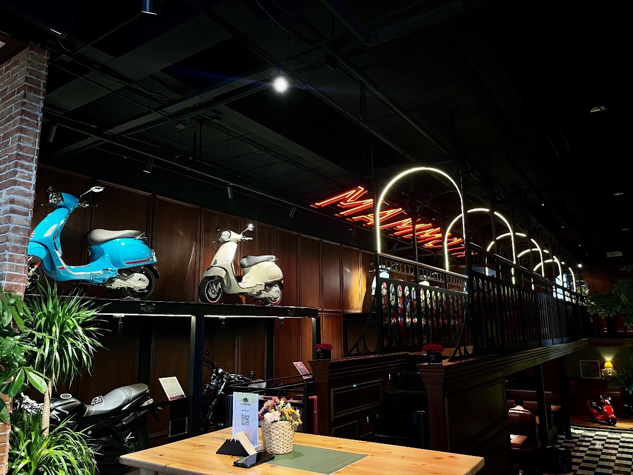 “当时我代理了两个复古机车的品牌,起初想做成4s店,王群董事长没有同意,他说在这个地方是一定要有文化属性的,你的车可以作为装饰,但不能以摩托车为主业。我也在做酒吧,手里有摩托车,恰巧还有个小餐厅,我就想着能不能把这些元素全部融合起来,放在一个店里面。不管是消费者还是车友来到这里,总能找到属于自己的兴趣与热爱。”平姐介绍说,目前在济南,俱乐部呈现的业态是独一无二的,她按照百工集提出的要求,尽可能在有限的空间内实现了文化氛围,装修起来虽然困难,但她想陪伴这个园区走过5年、10年甚至更久,而不是“昙花一现”。