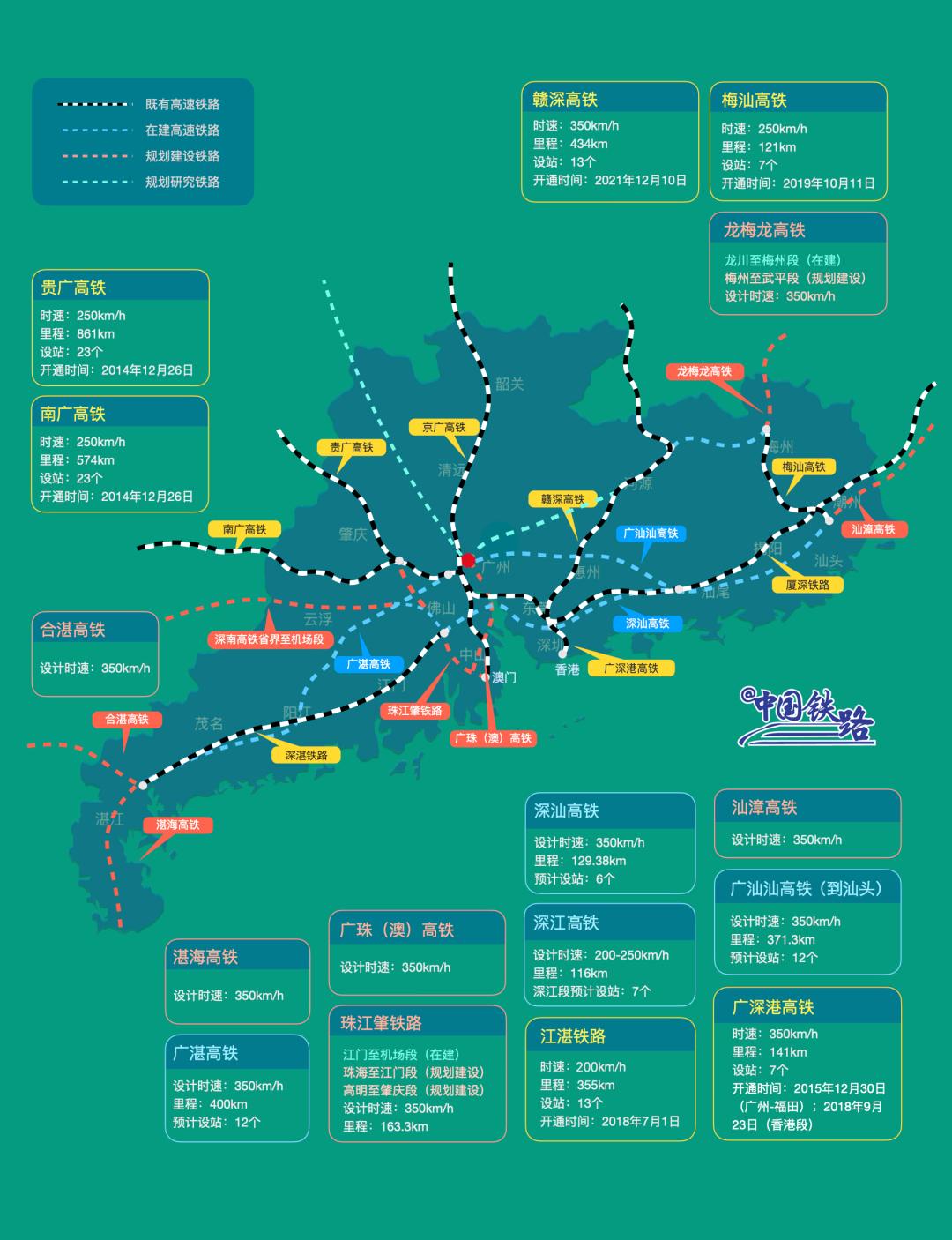 好消息是,同样是设计时速350公里的广湛高铁、龙梅高铁、珠肇高铁、漳汕高铁都已在路上,到2027年前后,广东有望成为市市通350公里高铁第一省。